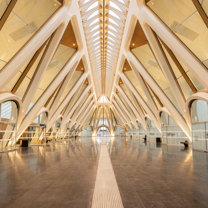 Conçue par l’architecte Santiago Calatrava, la gare se distingue par :