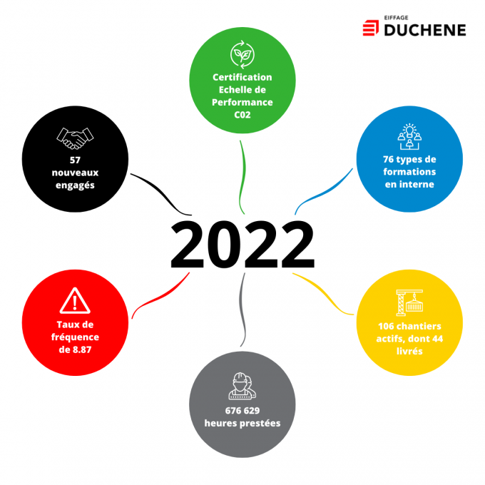 - 76 formations différentes ont été données à nos collaborateurs, car, chez Duchêne, on continue de se former tout au long de sa carrière ;