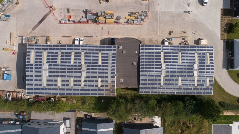Sur notre site de Strée, 822 panneaux solaires ont été posés sur la toiture de nos bureaux. Ceux-ci produisent en moyenne 220.000 kW par an. Cette année, nous avons autoconsommé 74 %.