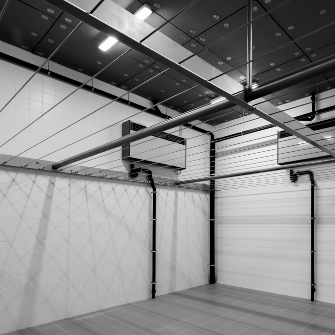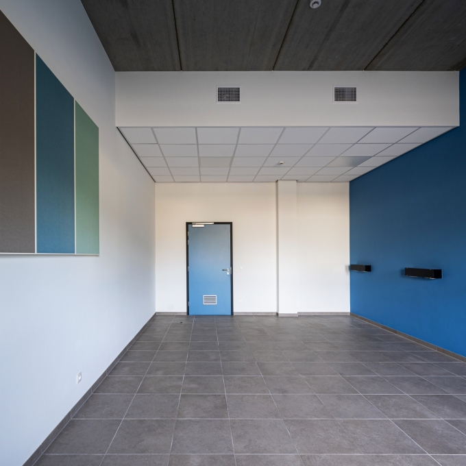 Particularité : construction en structure poutre colonne, adaptable pour l'avenir puisqu'il n'y a aucun mur porteur.