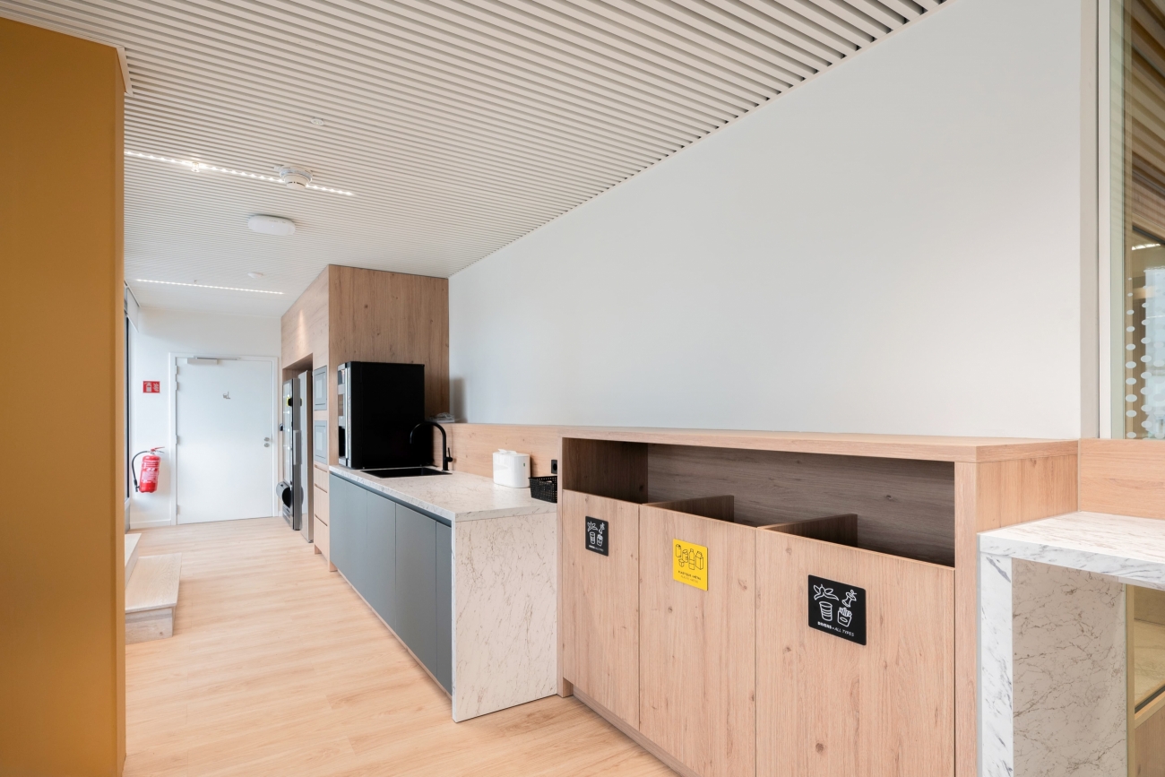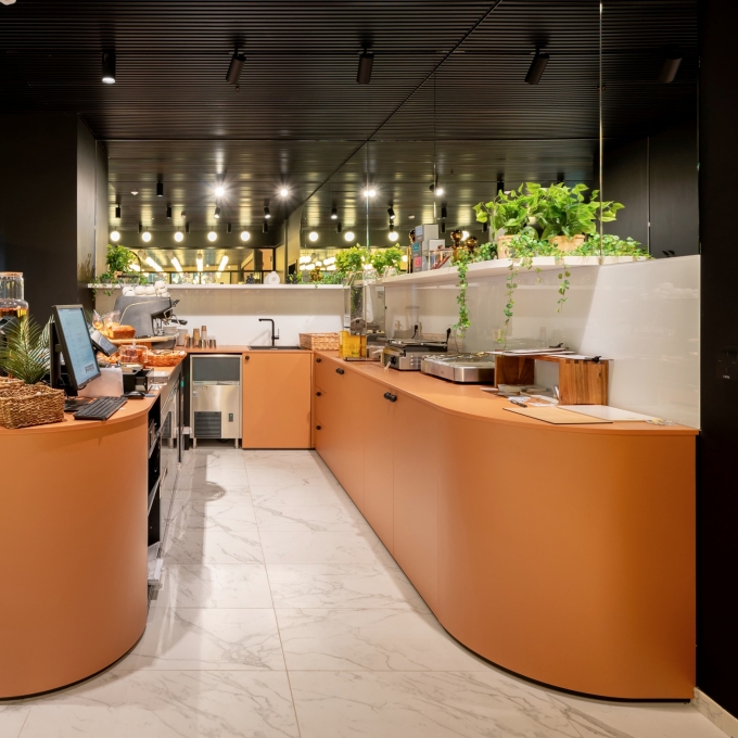 - desks aux formes arrondies dans les deux plans